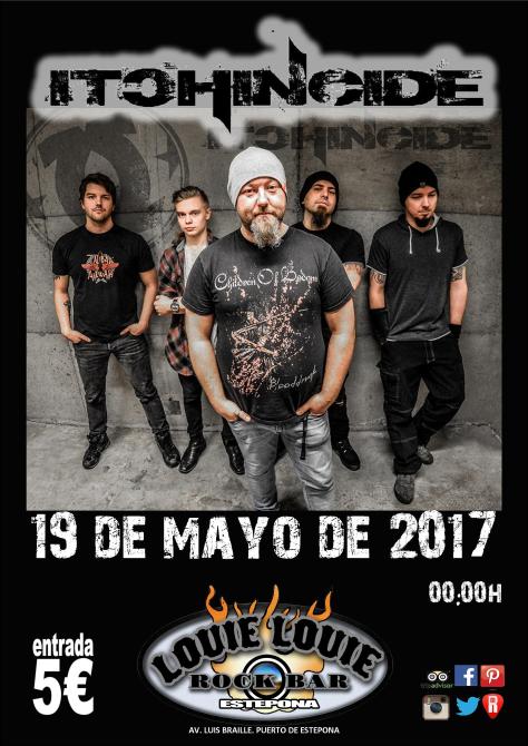 Llega el Trash Metal más brutal y comprometido de Noruega: ITCHINCIDE visita España por primera vez. Se encuentran de gira y ofrecerán sólo 4 conciertos, uno de ellos aquí en Louie Louie, of course. Después de 3 años de parón, la banda se encuentra de nuevo al completo y con reforzadas energías como para hacer temblar el suelo bajo nuestro pies. Una experiencia bestial. Entrada única 5€.