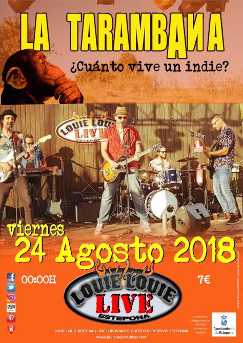 Vuelve la energía vigorosa en estado puro. LA TARAMBANA, un directo divertidísimo en el que nadie se librará de bailar.La banda de Daniel Quiñones viene a traernos una particular mezcla de diferentes estilos musicales (rock, reggae, rap, ska, funk, rumba…) con un espectáculo cachondo y cañero donde los haya. Entrada única 7€.