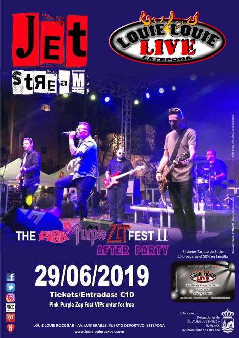 After Party: The official after party will take place a short walk away down in Estepona port at Louie Louie Rock Estepona head down there from midnight for a live performance by rock band JETSTREAM (www.jetstreamofficial.com). Tickets €10 available at the door. VIP Pink Purple Fest ticket holders get in for free.