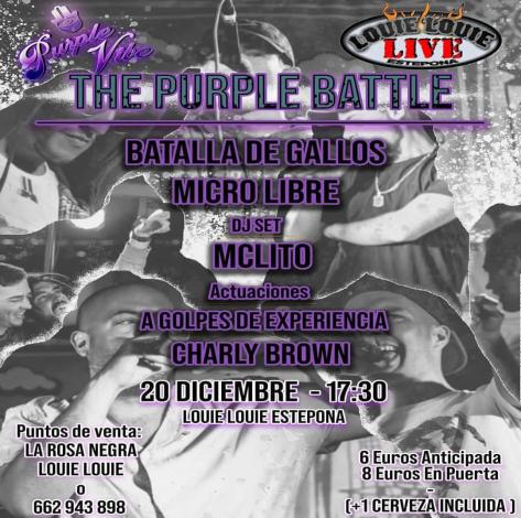 El viernes 20 de Diciembre a las 17:30 volvemos con otra batalla de gallos «The Purple Battle»! En Louie Louie Rock Estepona