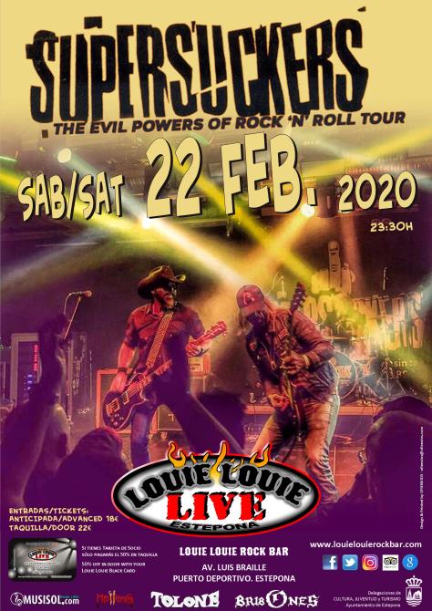 La mítica banda de Seattle compuesta por Eddie Spaghetti, ‘Metal’ Marty Chandler y ‘Captain’ Chris Von Streicher comienzan en Febrero la Gira «The Evil Powers of Rock n’ Roll Tour». Y el único directo en Andalucía será aquí, en Louie Louie Estepona, el garito más escandalosamente rockero al oeste del Guadalhorce.