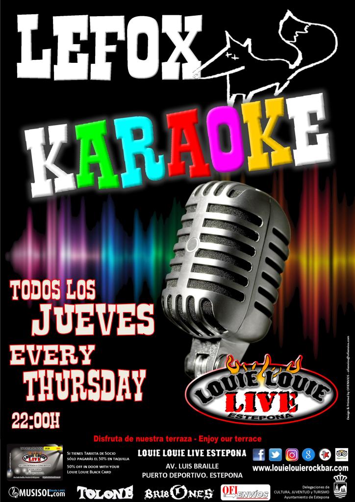 Sin categoría LEFOX KARAOKE 13 julio, 2021 louielouierockestepona Todos los Jueves – Every Thursday Disfruta en el escenario con el Karaoke de Lefox. Todos los Jueves en Louie Louie Live Estepona Enjoy on stage with Lefox karaoke. Every Thursday at Louie Louie Live Estepona Comparte esto: Compartir en X (Se abre en una ventana nueva) X Comparte en Facebook (Se abre en una ventana nueva) Facebook Haz clic en Pinterest (Se abre en una ventana nueva) Pinterest Compartir en WhatsApp (Se abre en una ventana nueva) WhatsApp Enviar un enlace a un amigo por correo electrónico (Se abre en una ventana nueva) Correo electrónico Me gusta Cargando...