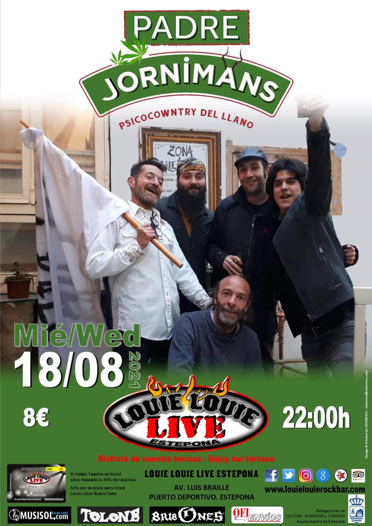 Una explosión de psicocowntry que no dejará indiferente a l@s valientes que vengan a verlos a Louie Louie Live Estepona! «Somos Padre Jornimans y vamos a daros el té».