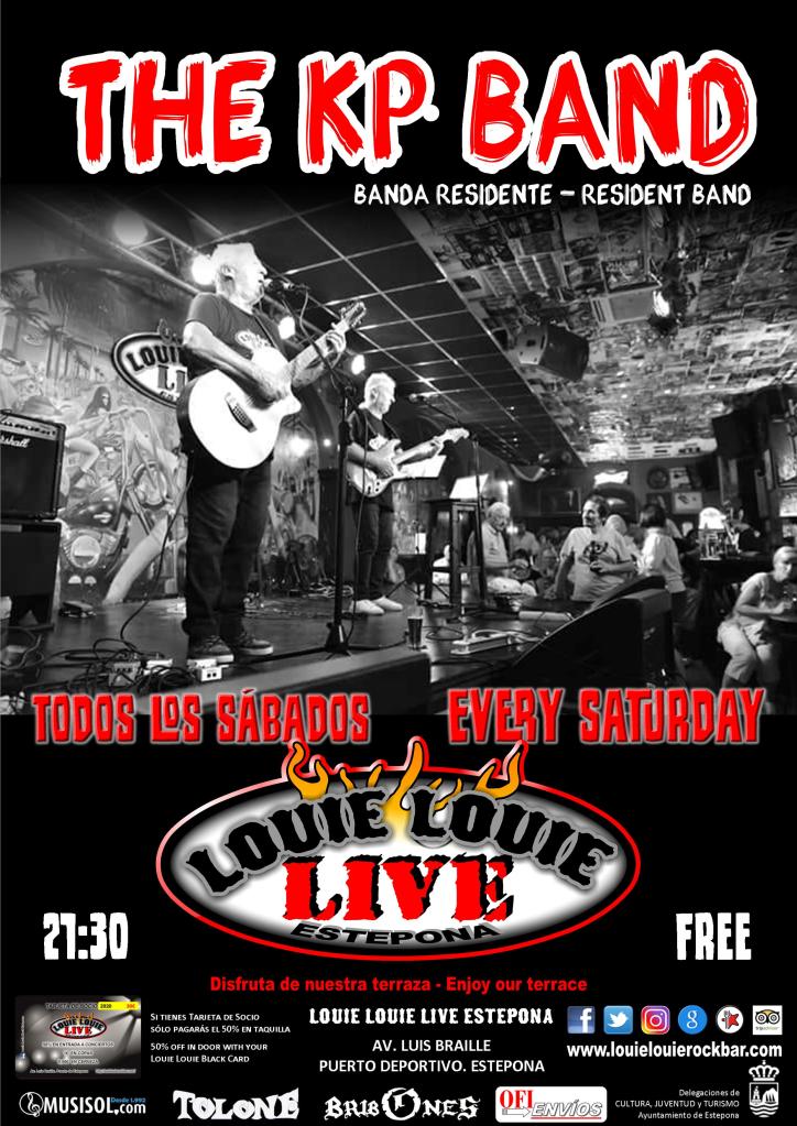 The KP Band, our resident band, every Saturday at Louie Louie Live Estepona. Free entrance. Reduced capacity