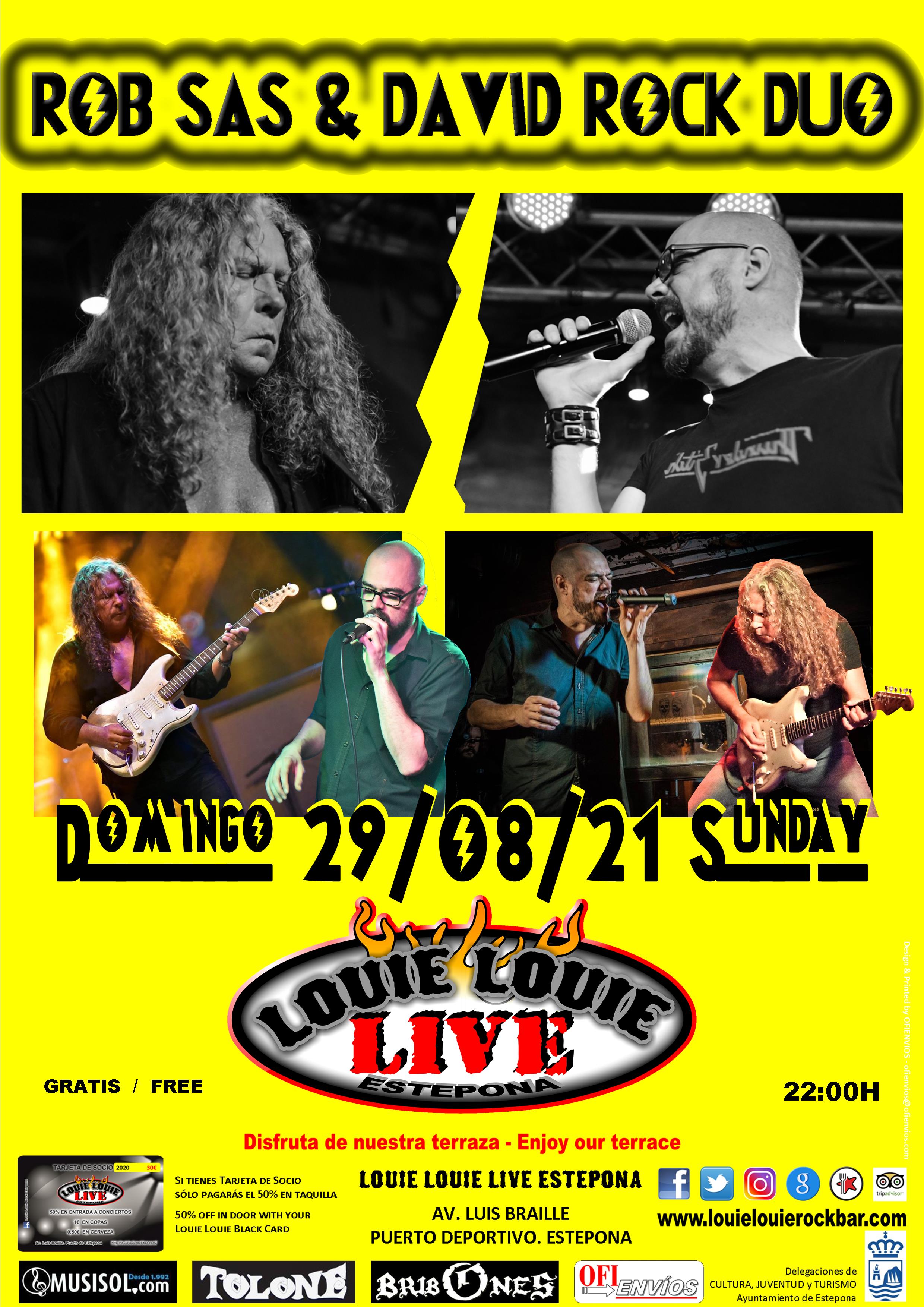 Rob Sas y David Gil juntos deleitándonos de nuevo con todo su buen hacer de Rock Clásico. AC/DC, Whitesnake, Deep Purple, ……¡No te lo puedes perder! Entrada gratuita. Aforo limitado