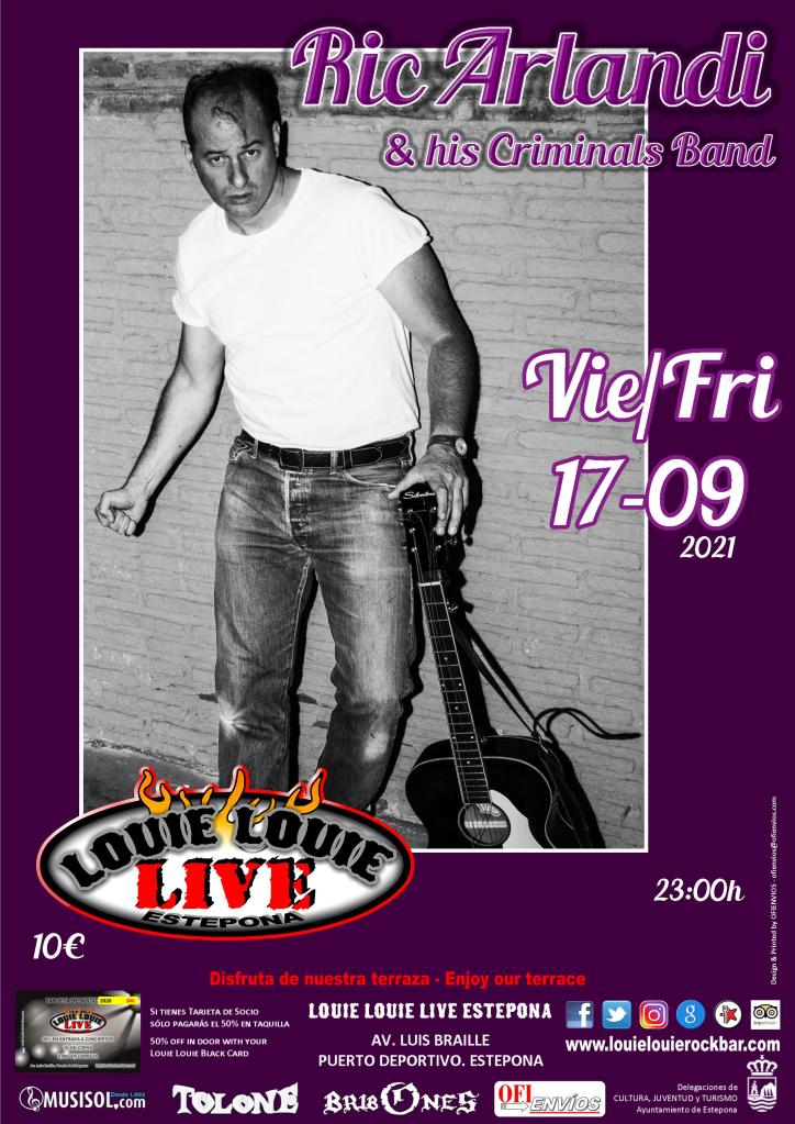 Sin categoría Ric Arlandi & his Criminals Band 16 septiembre, 2021 louielouierockestepona Viernes – 17 de Septiembre de 2021 – Friday Rockabilly en estado puro. Fuerza y Rock’n’Roll. Entrada 10€. aforo limitadoRockabilly in its purest form. Force and Rock’n’Roll. Tickets 10€. Limited Capacity Comparte esto: Compartir en X (Se abre en una ventana nueva) X Comparte en Facebook (Se abre en una ventana nueva) Facebook Haz clic en Pinterest (Se abre en una ventana nueva) Pinterest Compartir en WhatsApp (Se abre en una ventana nueva) WhatsApp Enviar un enlace a un amigo por correo electrónico (Se abre en una ventana nueva) Correo electrónico Me gusta Cargando...