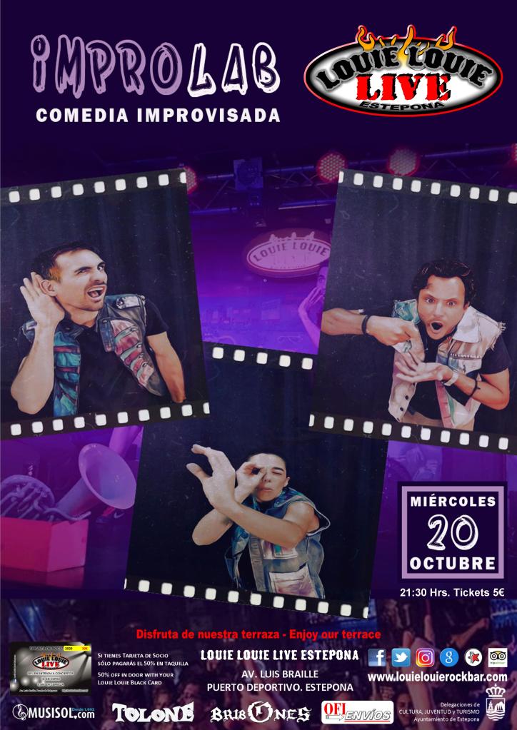 Sin categoría IMPROLAB. Comedia Improvisada 19 octubre, 2021 louielouierockestepona Miércoles – 20 de Octubre de 2021 – Wednesday Un rato de música y teatro divertido que no te puedes perder. Entradas 5€A fun time of music and theater that you cannot miss. Tickets € 5 Comparte esto: Compartir en X (Se abre en una ventana nueva) X Comparte en Facebook (Se abre en una ventana nueva) Facebook Haz clic en Pinterest (Se abre en una ventana nueva) Pinterest Compartir en WhatsApp (Se abre en una ventana nueva) WhatsApp Enviar un enlace a un amigo por correo electrónico (Se abre en una ventana nueva) Correo electrónico Me gusta Cargando...