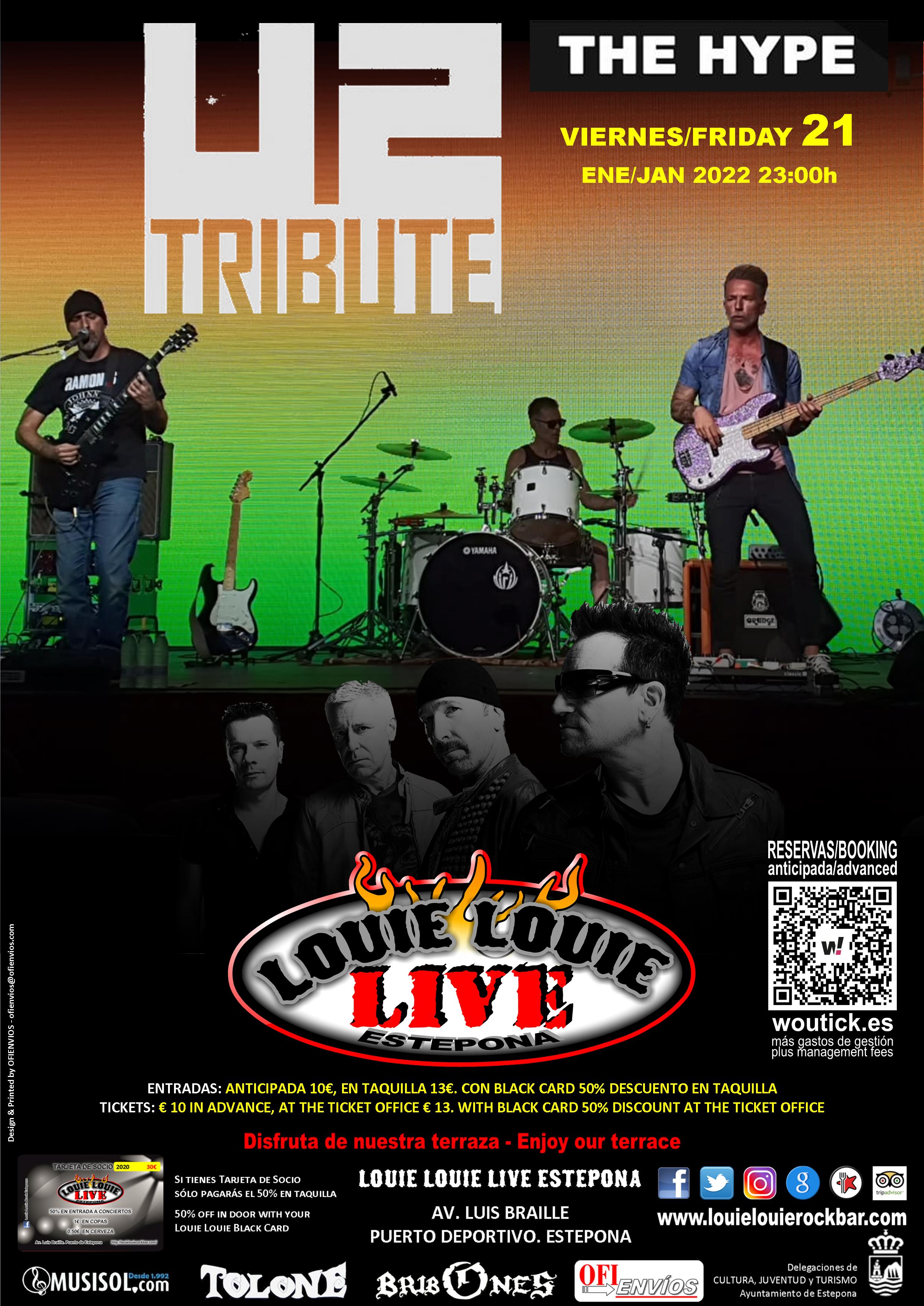 Los extraordinarios The Hype vuelven a Louie Louie Live Estepona con su magnífico tributo a U2. Entrada anticipada (Woutick.es) 10€. En taquilla 13€