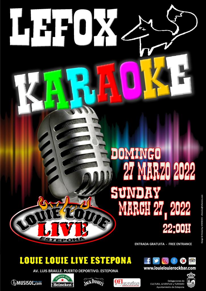 Este domingo repetimos Karaoke con la música de LeFox. Rock y diversión a partes iguales. Entrada gratuita