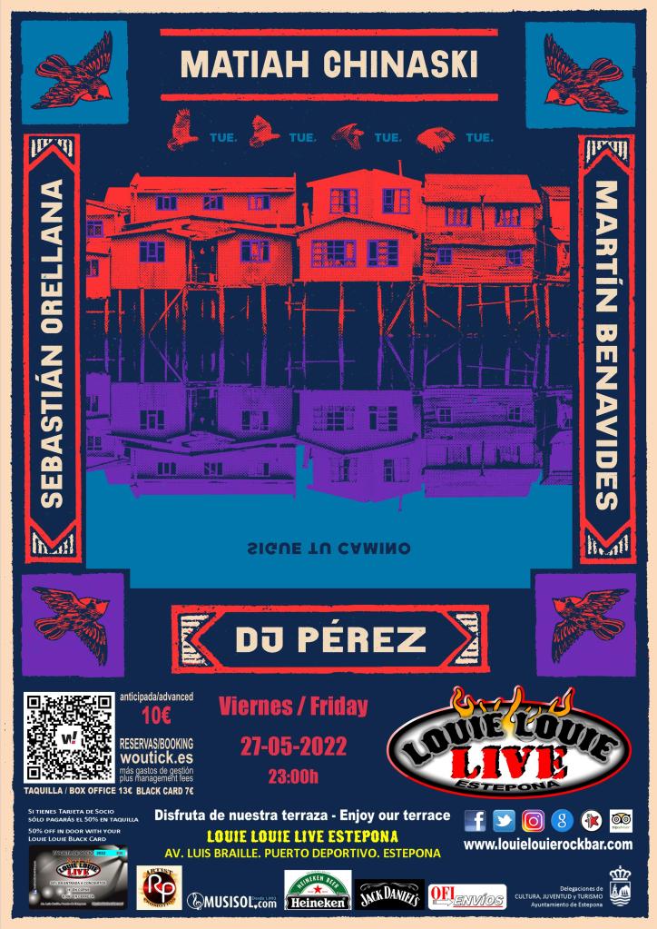 Diversos músicos chilenos unen fuerzas en una suerte de supergrupo, liderado por Sebastián Orellana, para ofrecer una gira de cinco fechas por Andalucía, una de ellas en Louie Louie. Se trata del propio Orellana junto a Martín Benavides, Matiah Chinaski y Dj Pérez.