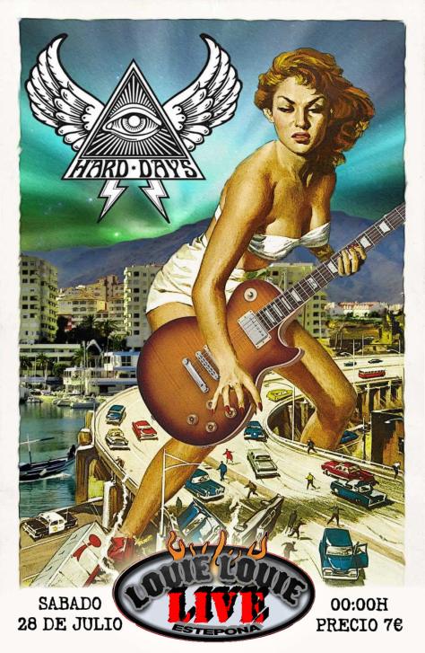 Si te gusta el Rock clásico, la psicodelia, el blues….estas de suerte⚡Súbete a la nave Hard Days para fliparlo con sus Sonidos Purple, Zeppelin, Sabbath y muuucho mas!!⚡ Armados con uno de los mejores discos de Hard Rock nacional, estaremos descargando nuestro jameante show el 🔥28 de Julio en Louie Louie Rock Live Estepona. Entrada única 7€.