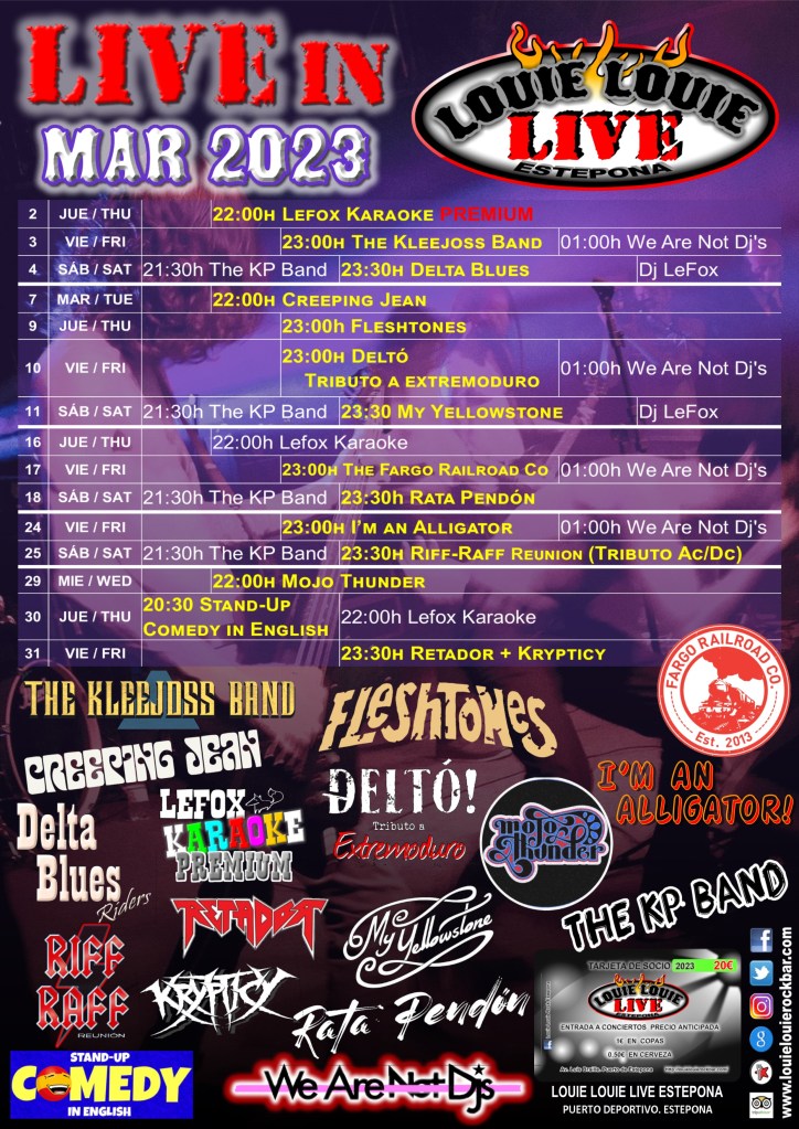 Un mes de Marzo bastante completito, con mucho Rock y grandes bandas nacionales e internacionales, además de nuestros grupos y Dj’s Residentes de siempre.