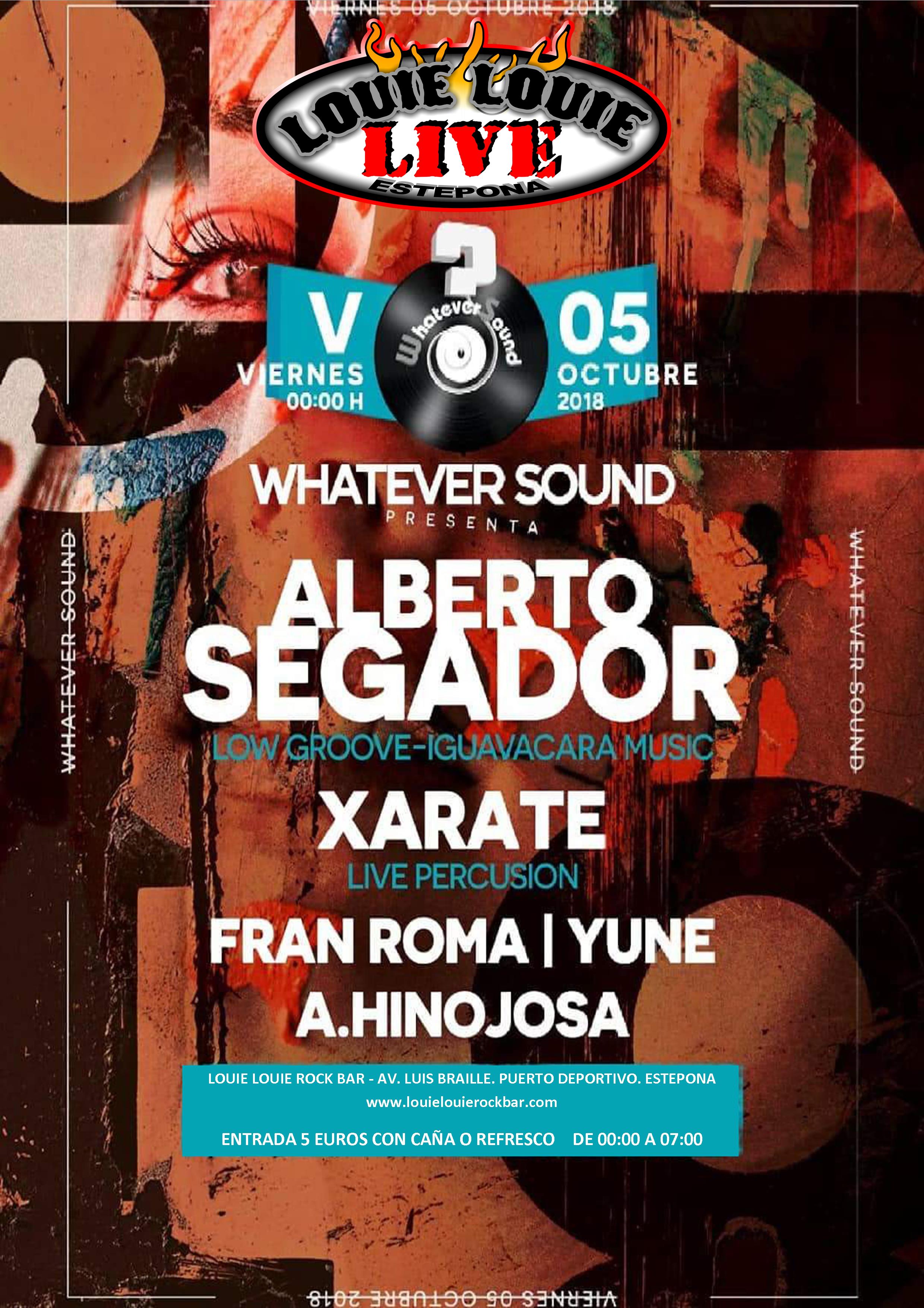 Y como no las guindas de nuestro gran pastel con los dj´s residentes y almas de este proyecto que es Whatever Sound con Fran Roma a la cabeza haciendo un b2b con Hugo Kino de una hora y media que será muy potente y contundente, con Yune Mk (el negrito molon) con toda su arte y con la magia de Onklatech que también sorprenderá en b2b con Lötech y darán lo mejor de lo mejor para que no paremos de bailar y disfrutar en toda la noche…