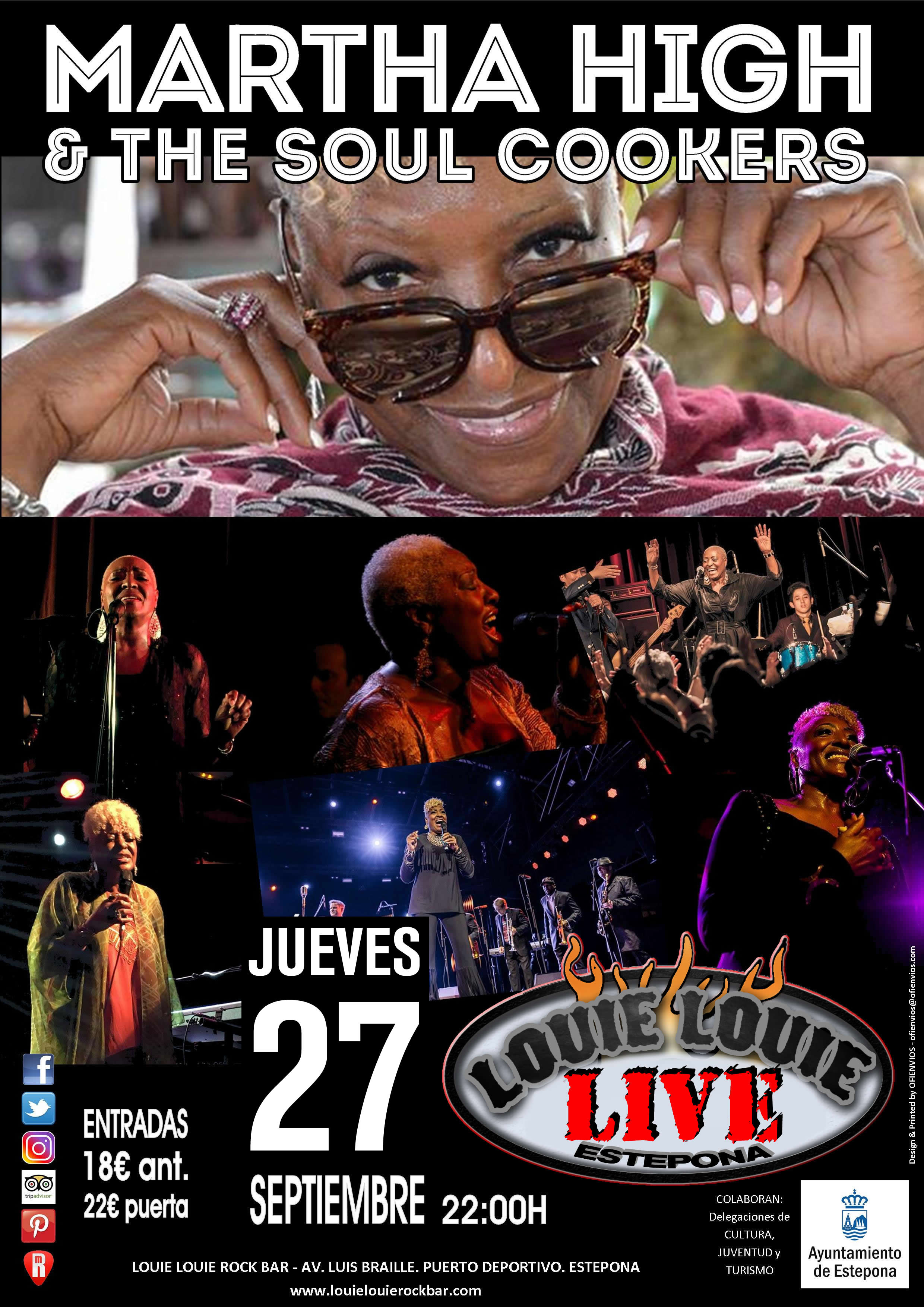 Martha High inició su carrera con ‘THE JEWELS’ quienes pronto llamaron la atención y el oído de JAMES BROWN quien les grabó varios álbumes, convirtiéndose además en su acto de apertura viajando extensamente con su “James Brown Revue”. Trás la disolución de la banda, Martha se quedó con James Brown y siguió trabajando con él como su vocalista de fondo personal durante 32 años!