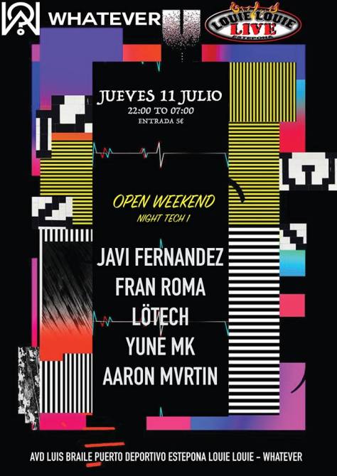 El horario de la caseta será desde las 22:00h hasta que nos echen, salvo el Sábado que abriremos a las 20:00h.